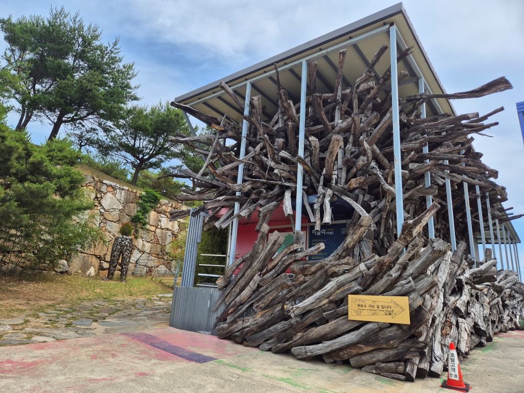 알고 보니 강릉 산불로 쓰러진 나무들을 모아 만든 예술 작품이었어요.