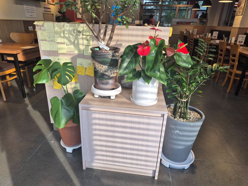 🌿 실내 분위기 – 식물들과 정돈된 테이블