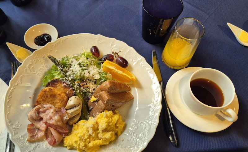 미리 예약해둔 양식 조식을 먹으러 갔어요.
