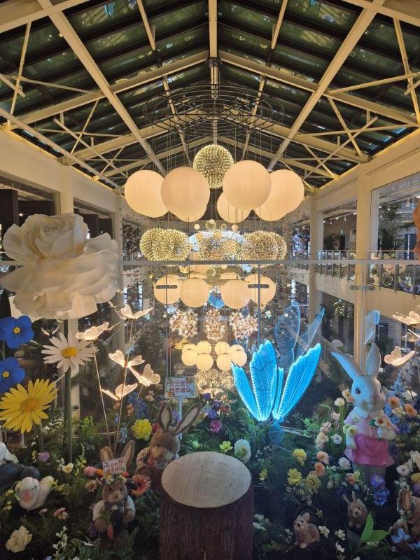 2층 한쪽에는 **열대 식물들로 꾸며진 ‘열대 숲존’**도 있었어요.