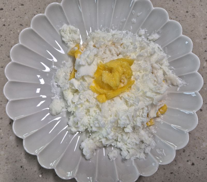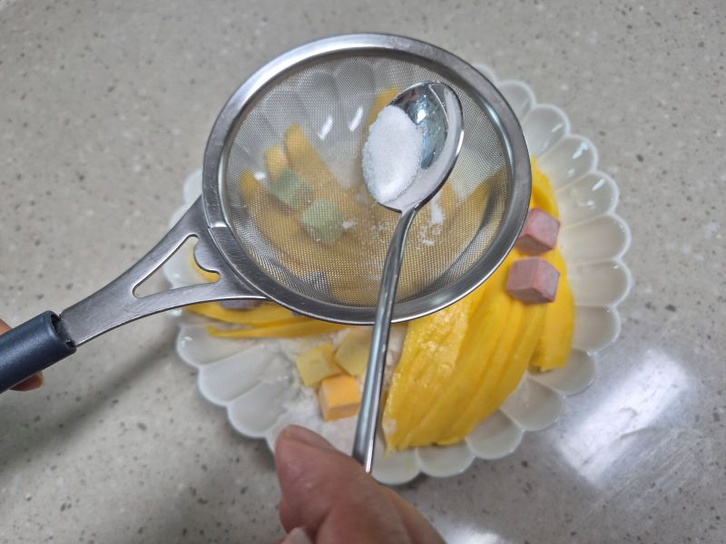 - 잘게 자른 망고를 가운데 올려주세요.