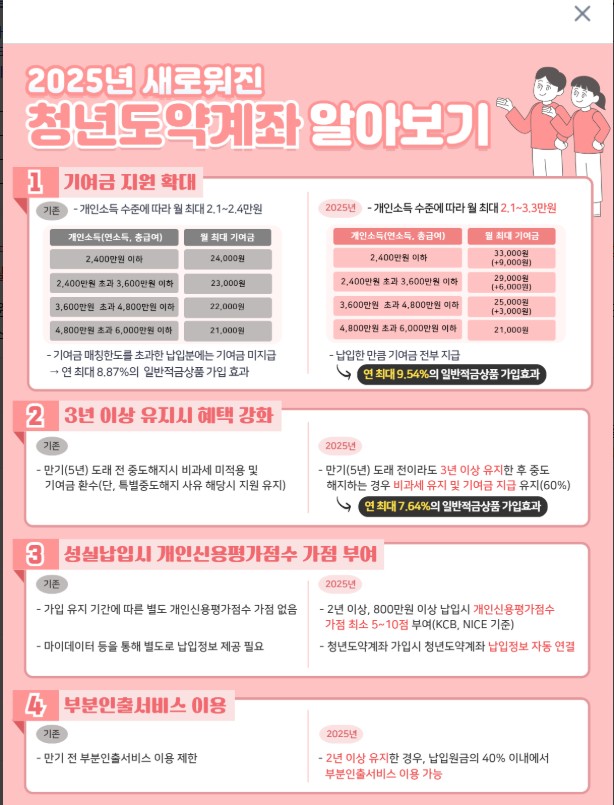 - 2025년부터는 납입 한도까지 전 구간 기여금 지급 확대