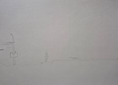 | 처음에 스케치한 건물의 실루엣이 화장지로 문지르면서 지워져서 다시 진한 실루엣을 그린다. | 진한 부분을 표현하기위해 진한 샤프심을 넣은 샤프로 가로선을 긋고 문지른다. | / 사선을 긋고 문지르고, 반대방향 사선을 긋고 문지른다. |