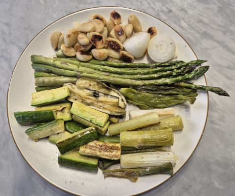 - 가지, 애호박, 꽈리고추, 양파, 통마늘, 아스파라거스, 대파