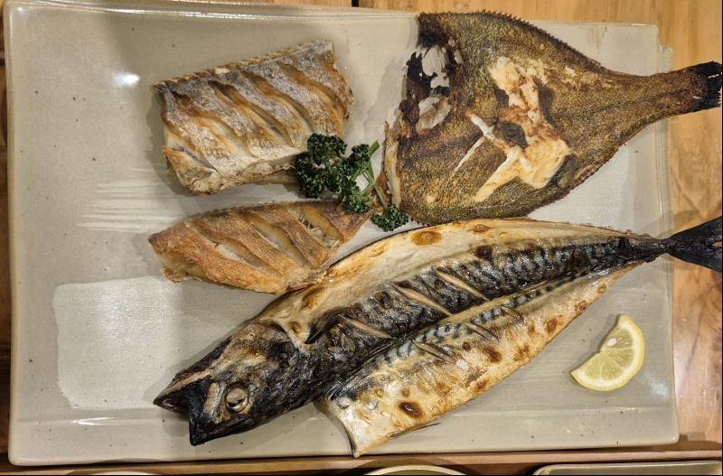 🥢 “건강한 나물 반찬과 색다른 목이버섯 무침” | 3인분의 생선구이. 바삭하게 잘 궈워져서 맛있었어요~ |